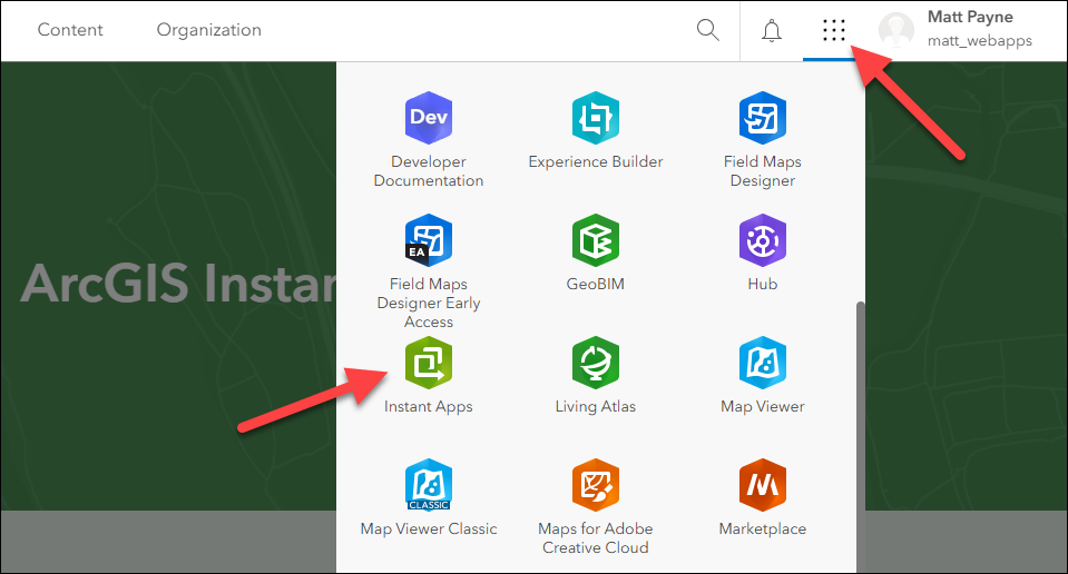 - On the Content tab of your organization, click Create app > Instant Apps
