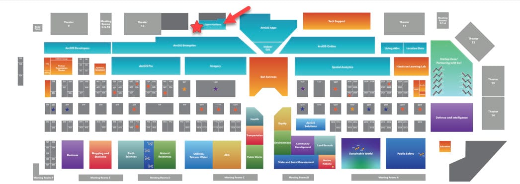 The Open Platform area within the Esri Showcase at the Expo will include five kiosks and a dedicated Spotlight Theater: