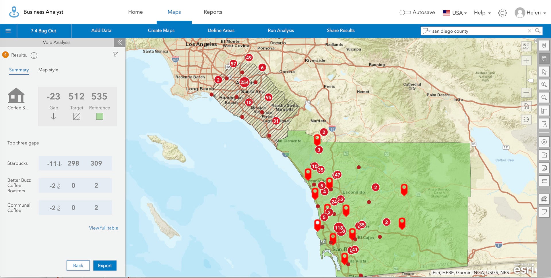 With the latest 7.4 release, ArcGIS Business Analyst Web App users can now use the Void Analysis tool to analyze hundreds of potential businesses in similar areas to find business gaps in your trade area. Void Analysis tool is a crucial feature for companies who want to explore market demands in new areas or landlords seeking to fill vacancies.
