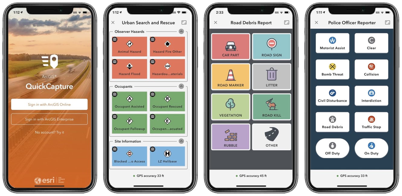 ArcGIS QuickCapture is the fastest way to collect field observations. With this simple app, you can quickly record field observations from vehicles, conduct aerial surveys, or assess damage. Data can be sent back to the office for analysis in real time, eliminating time spent manually processing handwritten notes. ArcGIS QuickCapture is integrated with ArcGIS, so new data from the field can be used instantly for better decision-making.