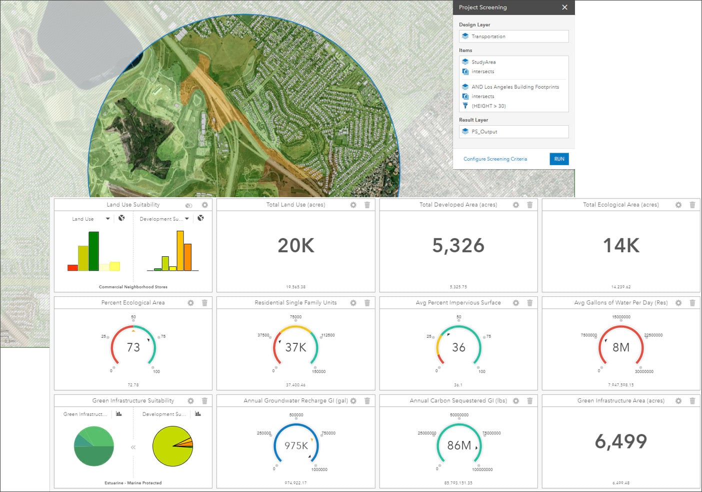 - Run spatial analysis on-the-fly, compare scenarios, and share data-informed plans using real-time dashboards.
