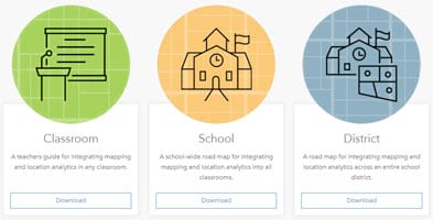 Teach with GIS: An Implementation roadmap for classrooms, schools, and districts is designed to put teachers and learners on the right path to using GIS. It stresses learning GIS through problem-based scenarios, and learning by doing. Both the teacher and learner can start making maps quickly (no account required), and then move on to more advanced skills using tools within their ArcGIS Online organization. Over 100 lessons are provided in an interactive curriculum builder, and can be selected by experience level, subject, duration, or by a variety of mapping themes. Visit Teach with GIS and start your journey towards successfully integrating GIS and mapping into your curriculum.