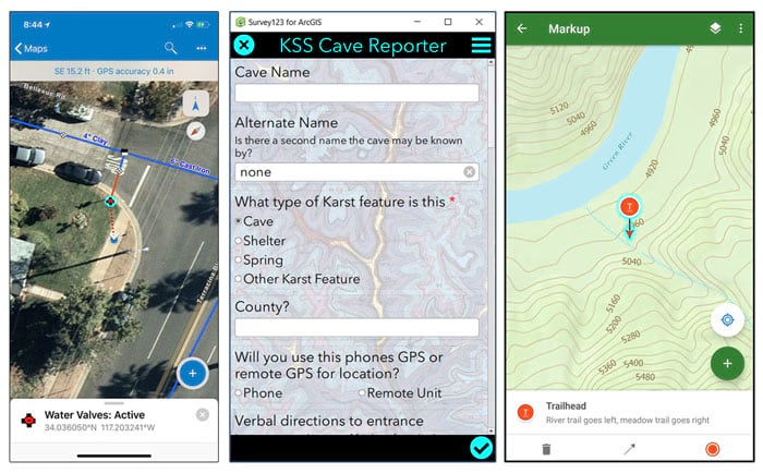 Shown in order below, Collector (Aurora beta), Survey123, and Explorer.