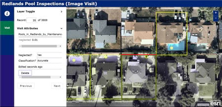 With Image Visit, users are driven to a predetermined sequence of locations in imagery to review attributes and add or edit features. The app minimizes the time it takes for imagery to load, streamlining workflows for insurance inspections, control point verification, or checking AI classification results.