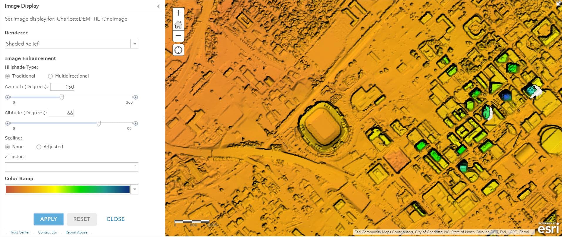 Using Map Viewer, you can create and display your imagery on the web. As the author of a map, you decide how the imagery in the map is presented. When you add an imagery layer to a map, the map initially uses the default display settings of the image service, however you can change the appearance and ordering of images. With this release, Map Viewer adds two new renderers for dynamically displaying imagery.
