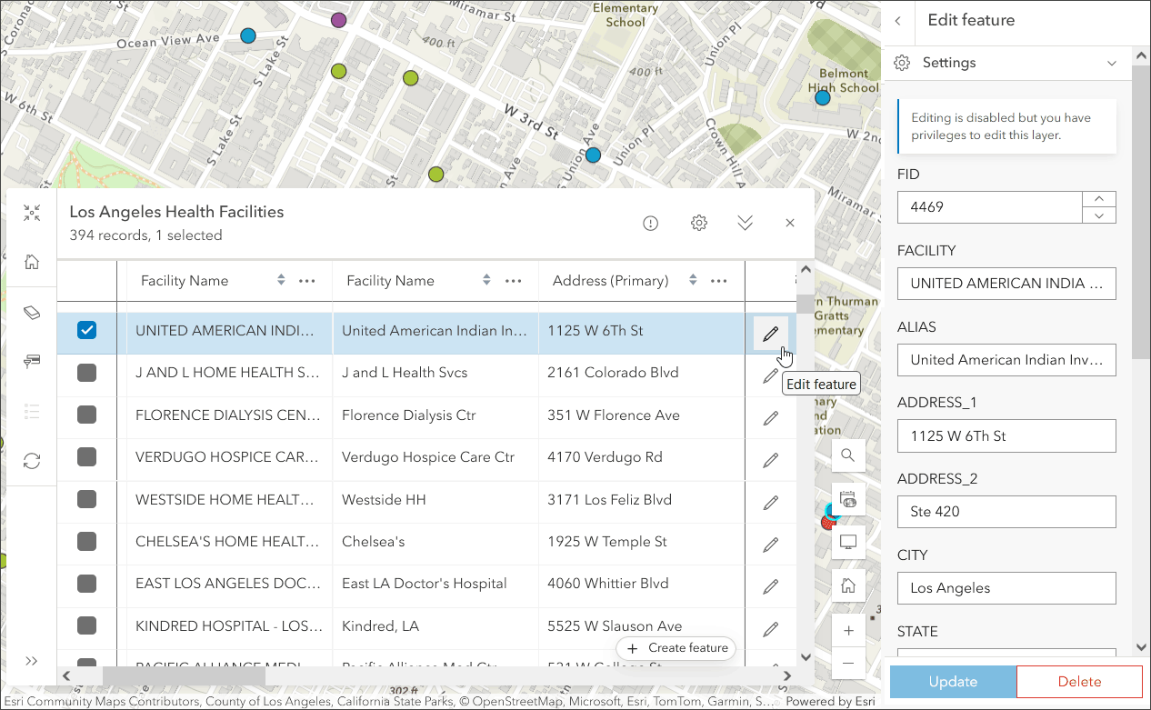 You can now create and edit features directly from the attribute table of a feature layer in Map Viewer. When working with table layers, you can also create and edit records directly from the table.