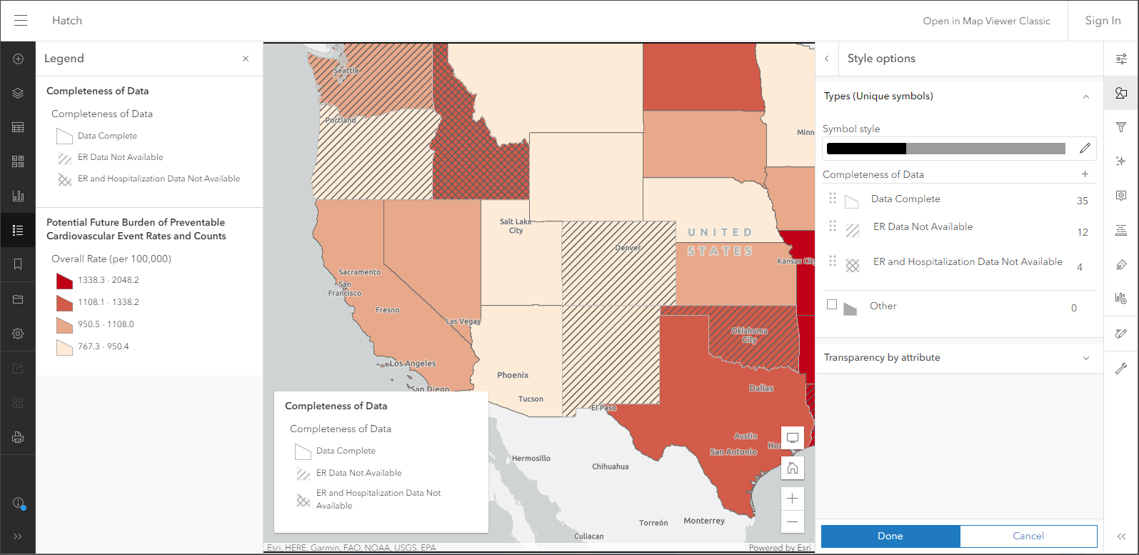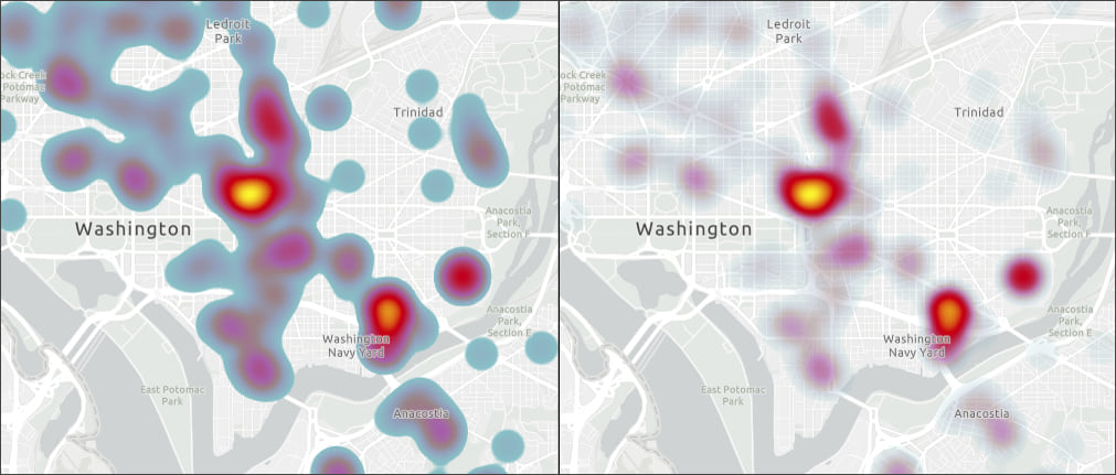 A new slider in Map Viewer allows you to soften the edges of a heat map, providing additional cartographic control of your map’s appearance by focusing on the hot spots and removing the prominence of outlier data.