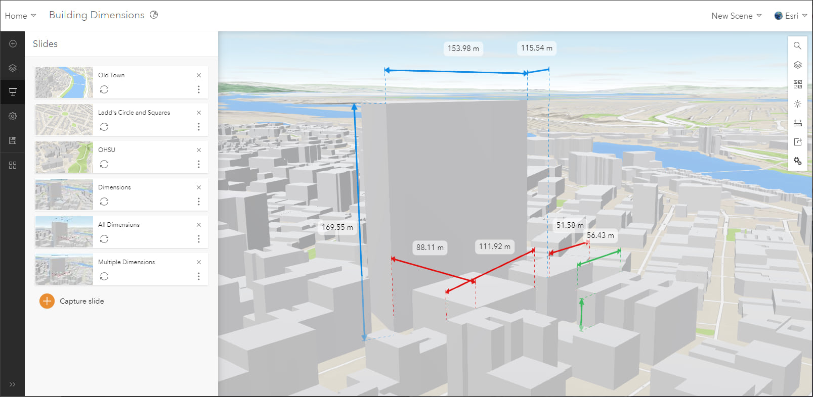 Use Scene Viewer in ArcGIS Online for creating, viewing, and exploring 3D scenes. With this update, Scene Viewer has been enhanced with new capabilities and features, including the following: