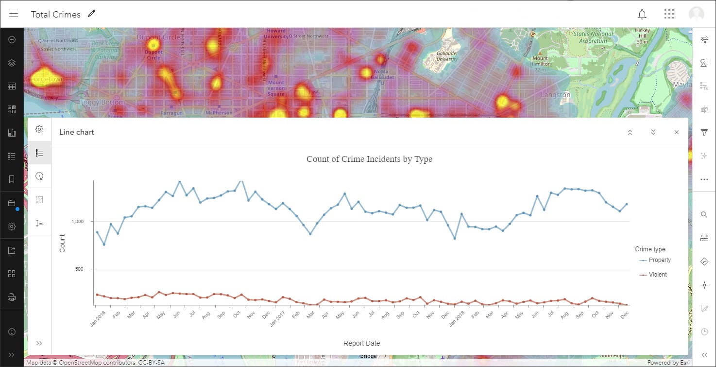For more information, see Visualize change with line charts in Map Viewer and Configure charts.