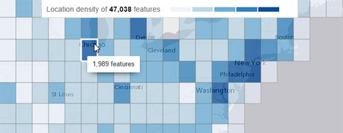 Administrators can enable GeoHash to provide a view of the density of features using a grid.