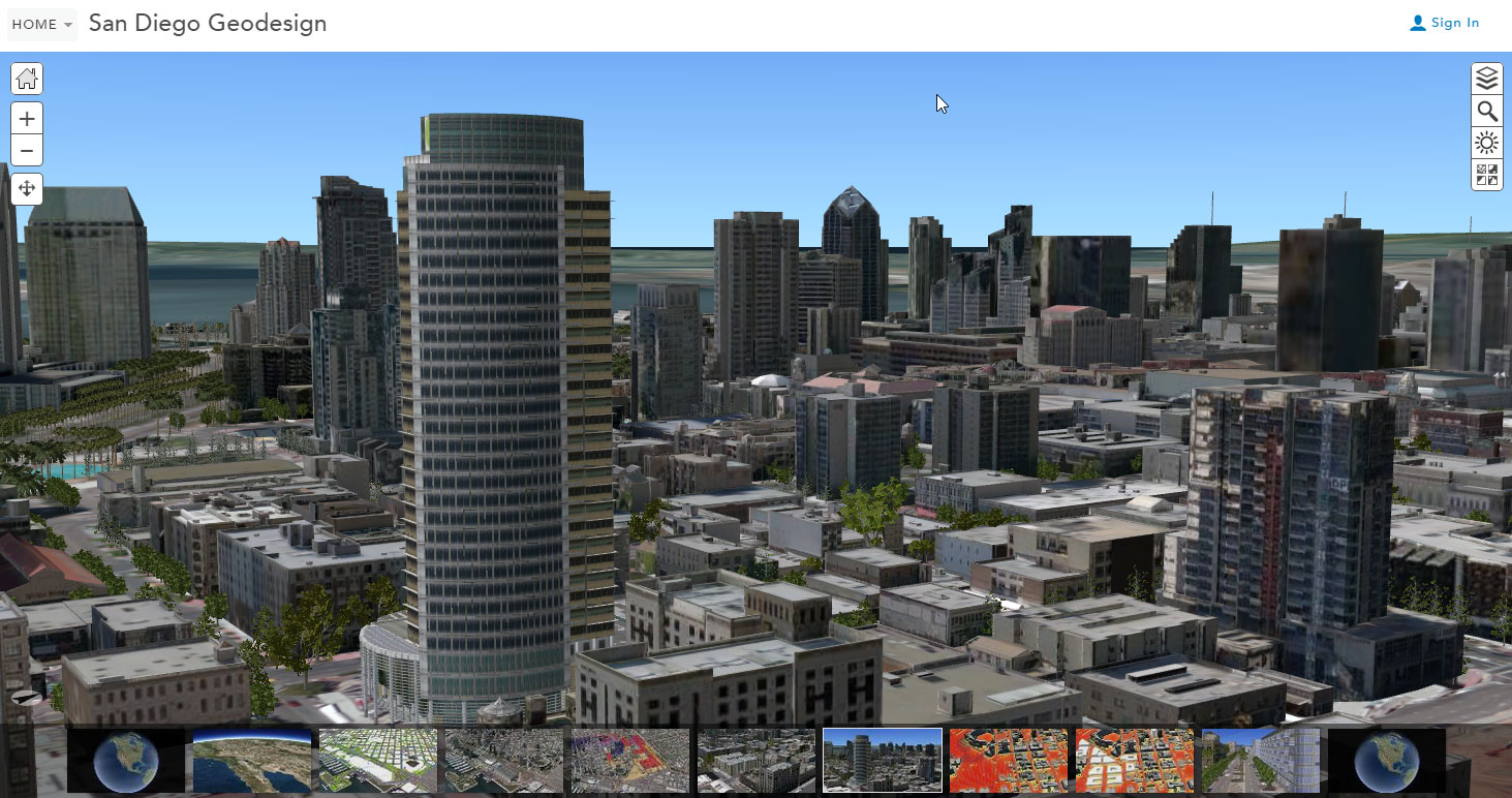 The scene viewer is an app built into ArcGIS Online used for creating and interacting with 3D scenes.