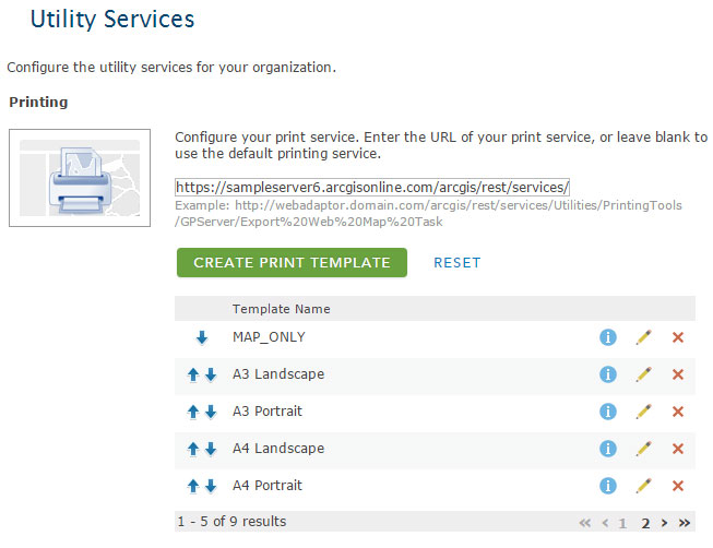 Organizations can include custom print layouts in the map viewer. Layouts are based on what’s provided in the organization’s print service, which can be configured using the utility services settings.