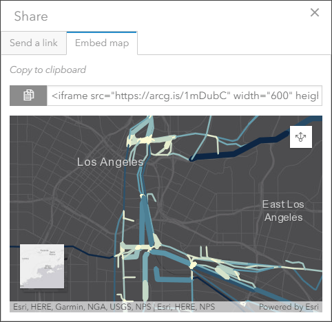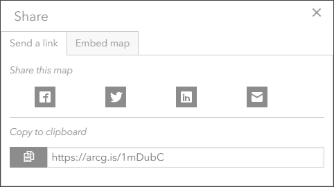 We’ve included improvements when you choose to share your app using Media Map. Sharing the app you’ve created helps expand the audience who will interact with the map and data. Common sources are still present such as Facebook, Twitter, and LinkedIn. The abilities to copy a direct link or embed the app are available as well. We’ve enhanced the parameters in the configuration panel to give more control over what share options are available in the app. On the Options tab you can control where the share button is located, as well as choose to include embed sharing options, social media options, and/or the copy URL option. Within the share dialog in the app, the embed map tab provides a preview of how the app will look when embedded in websites, news pages, articles, etc.