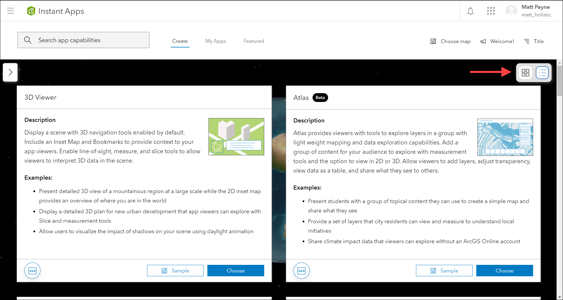 Create an app using Atlas (Beta) on the Instant Apps home page or from the Overview tab of a group page. For a more detailed introduction and step through of current features, check out our Introducing Atlas (Beta) blog in the Esri Community.