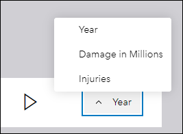 Animate through temporal or numeric data using Slider. We’ve added the ability to create a data slider for multiple numeric fields. This means you can use the app configuration to set up individual sliders based on different fields, and then access each of these sliders using a drop down menu in the published app. For example, a single app can now explore the impact of a disaster in terms of deaths, injuries, and damage in dollars. Create and edit each numeric slider on the Slider tab of the app configuration and then access the drop down menu on the right side of the slider in the published app.