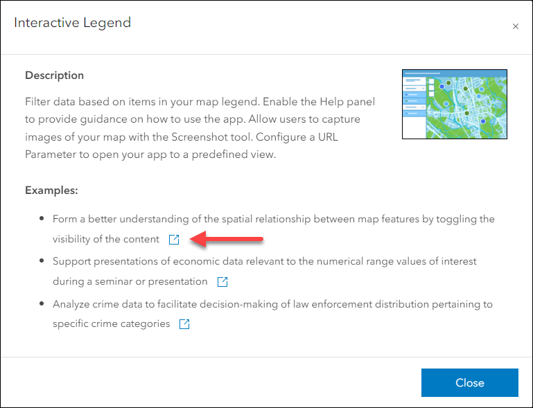 As of the June 2023 update of ArcGIS Online, a deprecation notice has been issued for ArcGIS Configurable Apps. Deprecation does not impact the availability, functionality, and Product Lifecycle Support phase of ArcGIS Configurable Apps.