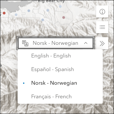 Important note: Text from the map and data, such as layer names, feature labels, and pop-up information need to be configured and translated separately. Visit the Instant Apps: Create multilingual apps with the new language switcher component blog for more information on this and a deeper dive into all details about using the new language switcher.