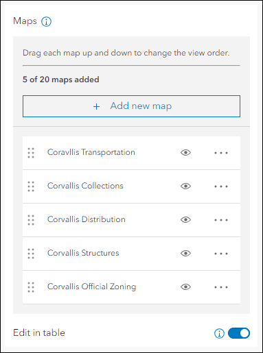 Review and edit data from multiple maps and layers using the new Manager app template. For example, review problems and feedback with new public transit stations that were collected using crowdsourcing. Use the app configuration to choose each map used in the project that you want included for review. A browser in the configuration lets you search and find any map you have access to so that you don’t have to rely on having everything contained inside a single group. Set up attribute filters to narrow down records that are returned in the table and displayed in the map using a new configuration that let’s you create filters on a per-map basis within your project. Manager is designed with an updated and improved mobile interface which lets you work easily on mobile devices that you or your app viewers have.