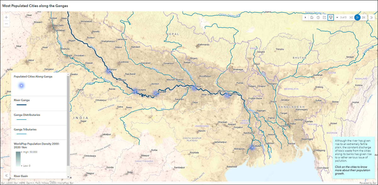 Also new is the ability to leverage time-enabled bookmarks to create slides. Time-enabled bookmarks are created in Map Viewer and will preserve and display the time extent in the map to match that of when the bookmark was created. Use the Import bookmarks option in the app configuration to create slides from your time-enabled bookmarks that are saved in the web map.