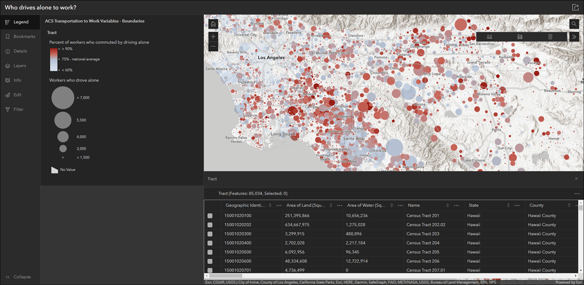 Chart Viewer leverages charts authored in Map Viewer to display data-based graphics alongside a map. New with this release is support for pie charts that you have configured in the map. With the ability to show up to three charts at once, Chart Viewer will now display pie charts, bar charts, histograms, line charts, and scatter plots alongside a map in a single app view. Also new is the ability to zoom in on chart elements to see the data in more detail. Use the Zoom tool on the chart to click and drag directly in the chart to select the elements to zoom to. Use the new Full extent tool to return to the full default view of the chart.