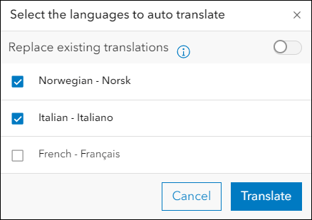 For more details about Auto translate (Beta) and using it to include machine translations in your apps, please check out our Instant Apps Language Switcher now includes Auto Translate blog on Esri Community.