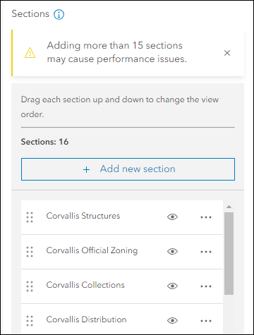 Use Portfolio to showcase different types of content all in one place by curating multiple resources related to a specific topic. We have updated the app to have no limit to the number of sections you can add. When you add new sections in the configuration, it lets you know how many you currently have created and does not display the previous restriction of 20 sections. Note that with adding a lot of sections, especially if they contain performance impacting content, the overall performance of the app and the sections could be affected. When you add a 15th section to the app a message in the configuration will appear that notifies you of this possibility.