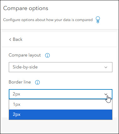 - Border line – A new setting has been added that increases the thickness of the border that separates maps or locations. Find the “Border line” setting on the Interactivity > Compare options panel of the app configuration and choose between 1px (default) and 2px. This subtle change can enhance the look of app layouts where the division between maps can blend together.