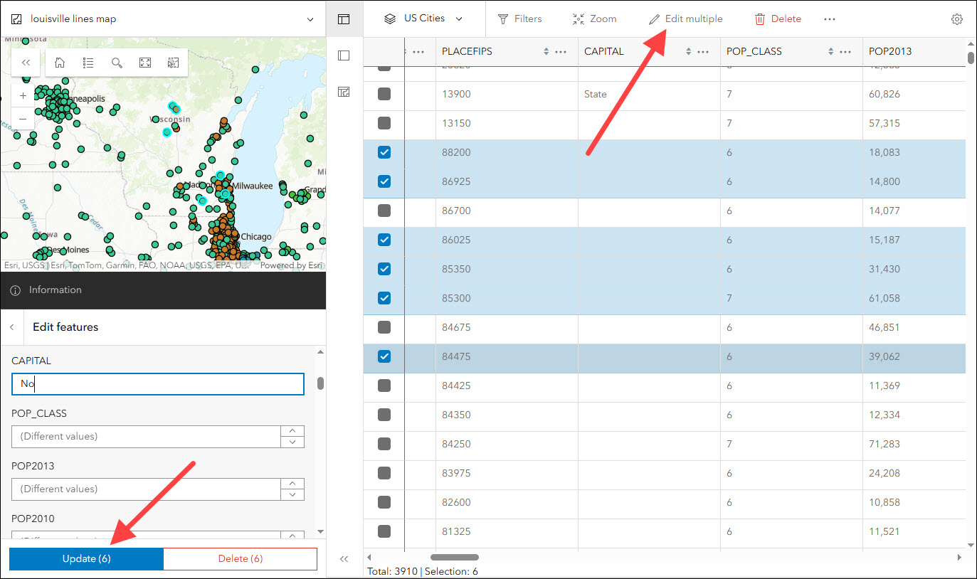 We’re excited to announce that batch attribute editing support has been added. Select multiple features at once from the table or map and use the Edit multiple button available in the app to begin. Set values for various fields in the editing window and then click Update to apply these attribute edits in batch to all currently selected features.