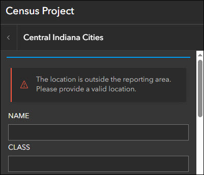 App authors can now set a boundary for reports to limit where they can be created. This means that app users must capture their report within this boundary or they will be presented with a warning message. Find the “Set report boundary” setting on the Reporter > Panel options tab of the app configuration. This setting uses an uneditable polygon layer from the map to establish the boundary to be used. Choose the desired uneditable polygon layer from the drop-down. When an app viewer attempts to make a report outside of the boundary of the feature(s) from this layer, a warning message will appear stating this information to them.