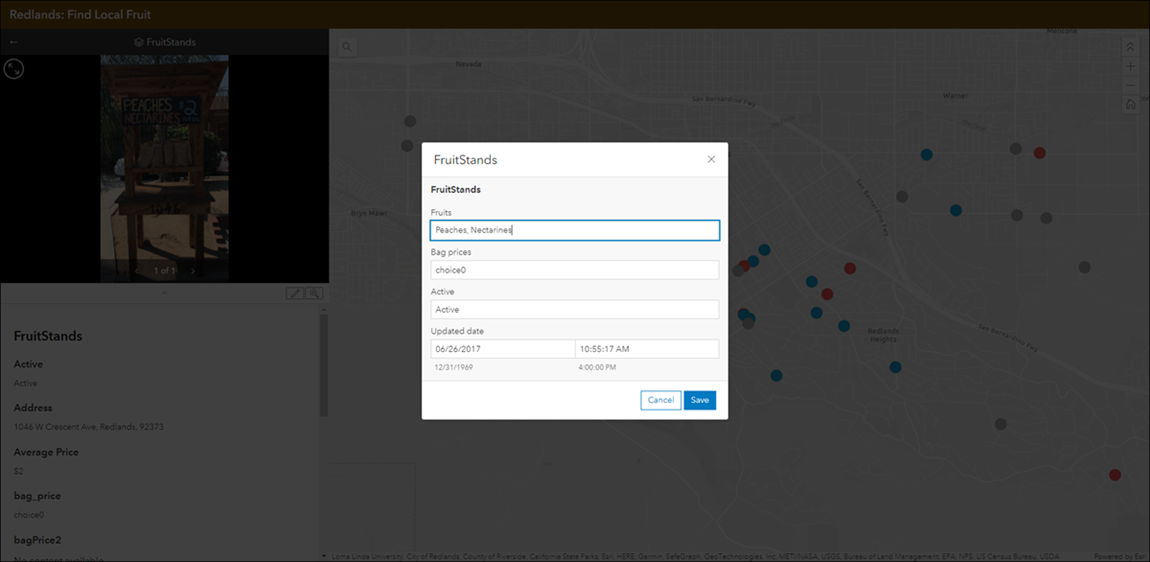 Display photos, videos, and PDF files stored as attachments alongside your map using the Attachment Viewer Instant App. New with this release we have added the ability for app viewers to update attribute information of attached images and videos while navigating through each feature. Enable the Attribute editing option in the configuration to include the editing button in the published app. Use this option for data reviewing workflows to assess and update information associated with feature attachments collected in the field.