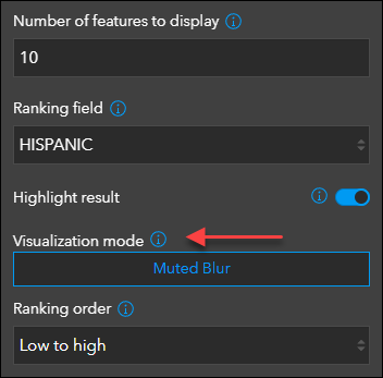 Present a list of locations in a map that is ranked by statistical values using the Countdown Instant App. New with this release is the ability to apply layer effects in your leaderboard list or countdown to help differentiate between active and non-active features. For example, apply the Drop Shadow + Blur visualization mode to emphasize features in the top 10 of a leaderboard with drop shadow, and deemphasize those outside of the top 10 with a blur. This setting can be found when editing both leaderboard lists and countdown lists in the app configuration using the Visualization mode setting.