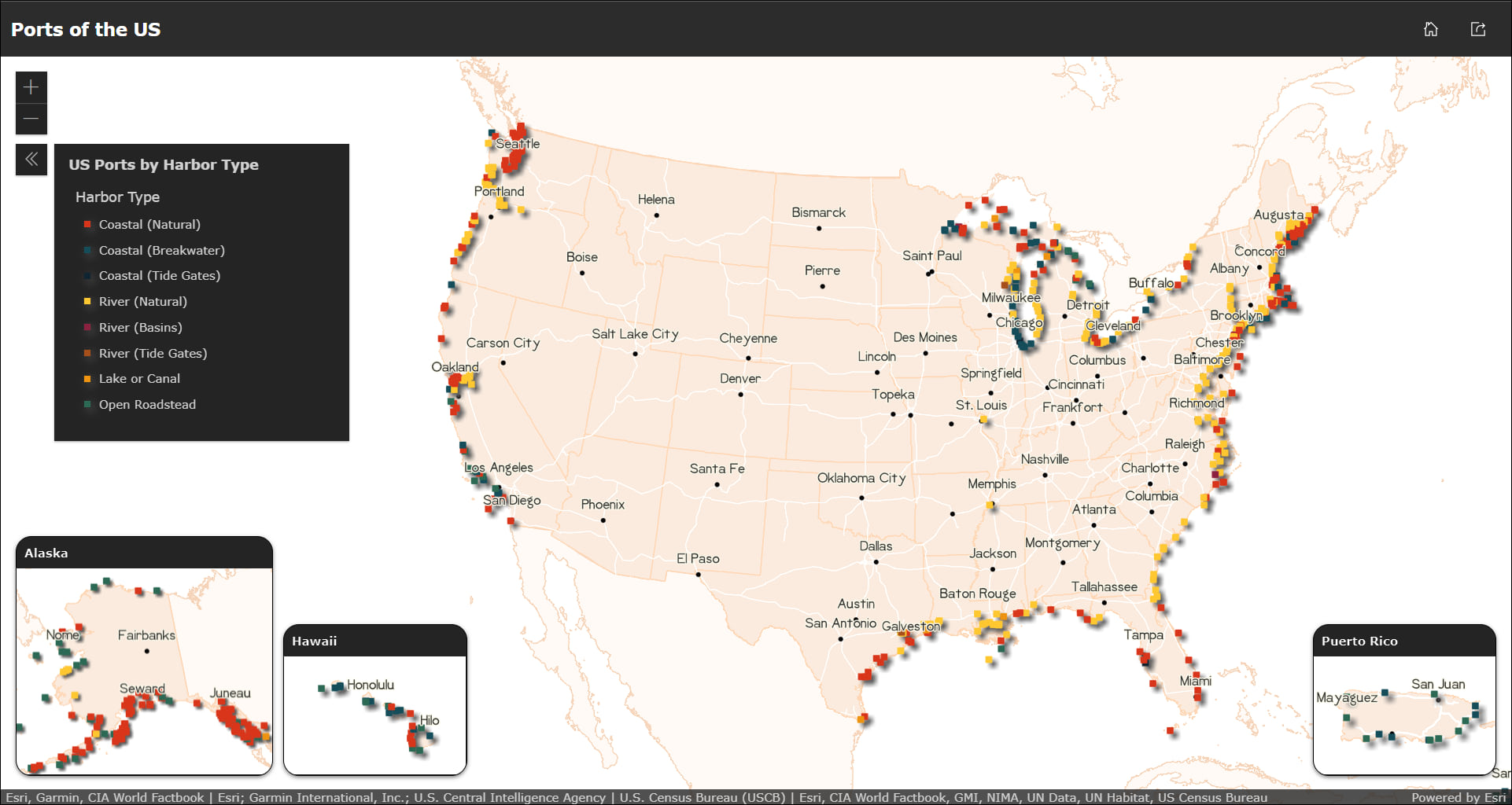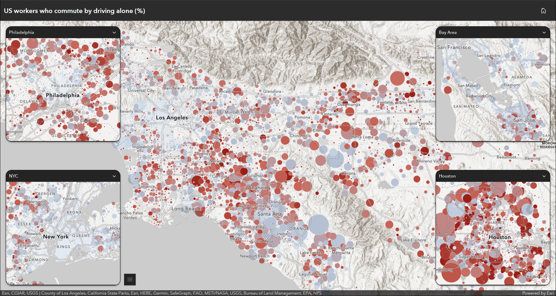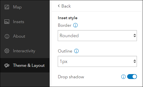 Display noncontiguous geographic locations using the new Insets (beta) app. Pick from a list of predefined geographic layouts or customize the inset locations with the option to use bookmarks from the map. Apply theming by picking an inset style and adding title headers. The Custom mode lets you import bookmarks from your web map to automatically generate insets, or you can create brand new insets directly in the app configuration and position them in the layout using the Position Manager which is found on the Theme & Layout section of the app configuration. Use Custom mode when you want to keep the look and feel of your web map and define your own inset locations.