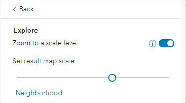 Sidebar offers a range of tools for exploring, understanding, and managing data. A panel containing these tools displays alongside the map and includes data editing, feature filtering, pop-up information, bookmarks, layer list, and more. With this release we have updated the app configuration with two new settings. First, you can now choose a map scale to be used when zooming to a selected feature. Find the “Zoom to a scale level” setting on the Interactivity > Explore/navigate section. When enabled, drag the slider to set your desired scale level to be used in the published app.