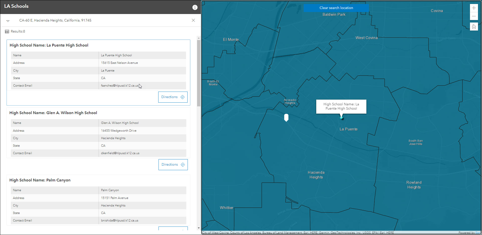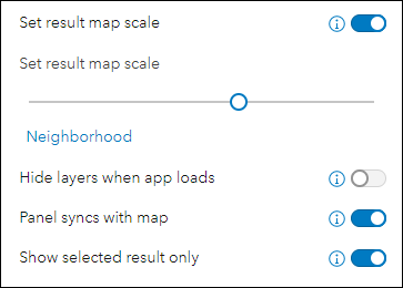 Discover locations within a zone or region to provide information using Zone Lookup. This app is great for identifying school districts, store regions, emergency evacuation zones, and more based on current location or a location provided by the app user. We’ve made a couple updates to generating and accessing result features. First, the app configuration now offers an option to set the desired scale level that the app will zoom to when you generate results. For example, set the scale level to use “Neighborhood” when you are looking for nearby parks. Second, the option to show only the selected result has been added. After results have been generated, select a results feature in the side panel by clicking on it and any other features included in the results will be hidden in the map temporarily.