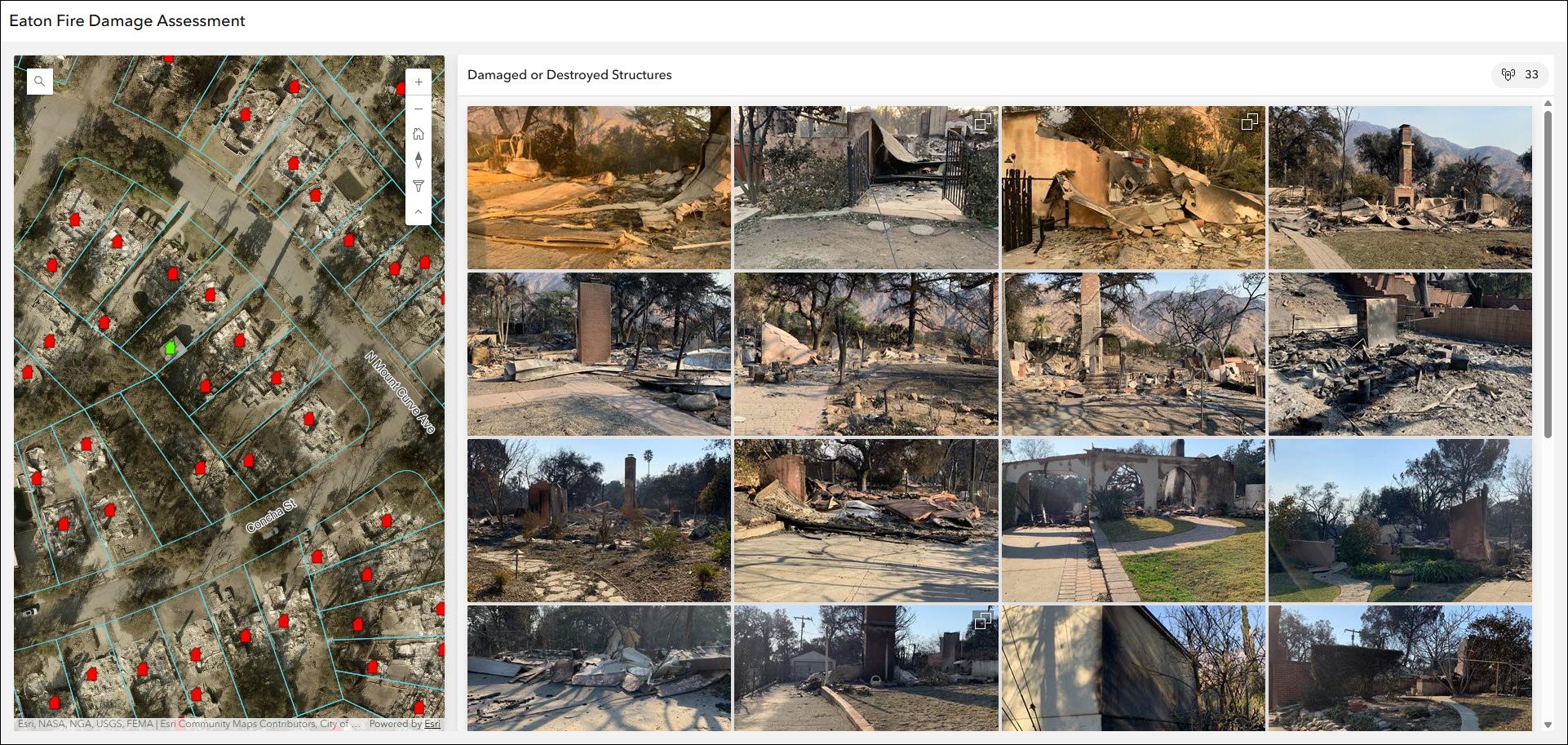 Display photos, videos, and PDF files stored as attachments alongside your map using the Attachment Viewer template. With this update comes an improved look and feel for a more modernized layout and experience of navigating through features and attachments. This update applies to both the Attachment focused and Map focused layouts. When viewing an app configured to use the Attachment focused layout, the app now loads showing a large gallery of attachments that correlate with features in the current map extent. Once a feature or attachment is clicked, the familiar attachment-centric layout shows with more detail.
