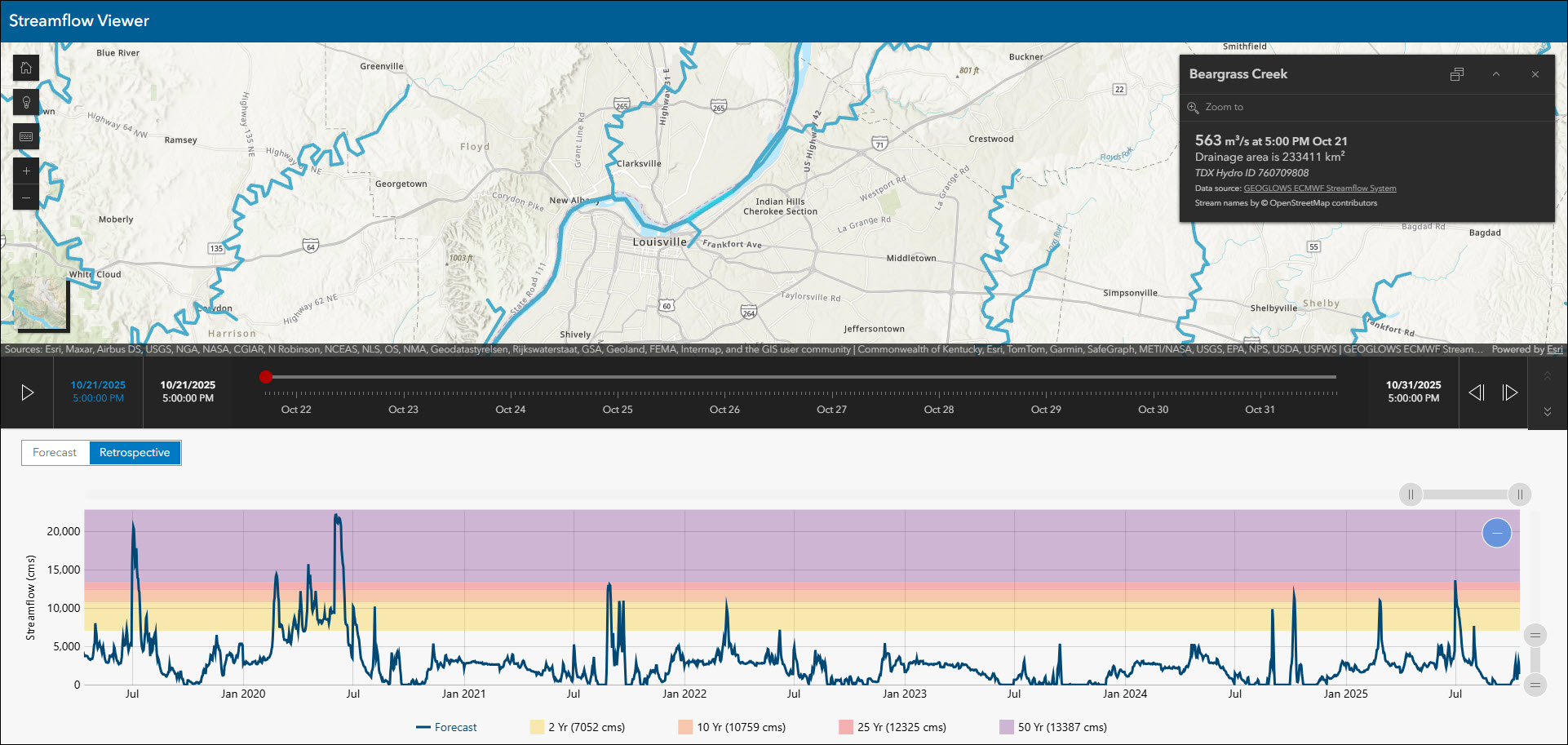 The October 2025 release includes an update with the Global GEOGLOWS model. This model now includes access to retrospective streamflow simulation, an 85+ year deterministic model simulation at hourly resolution beginning 1 January 1940.