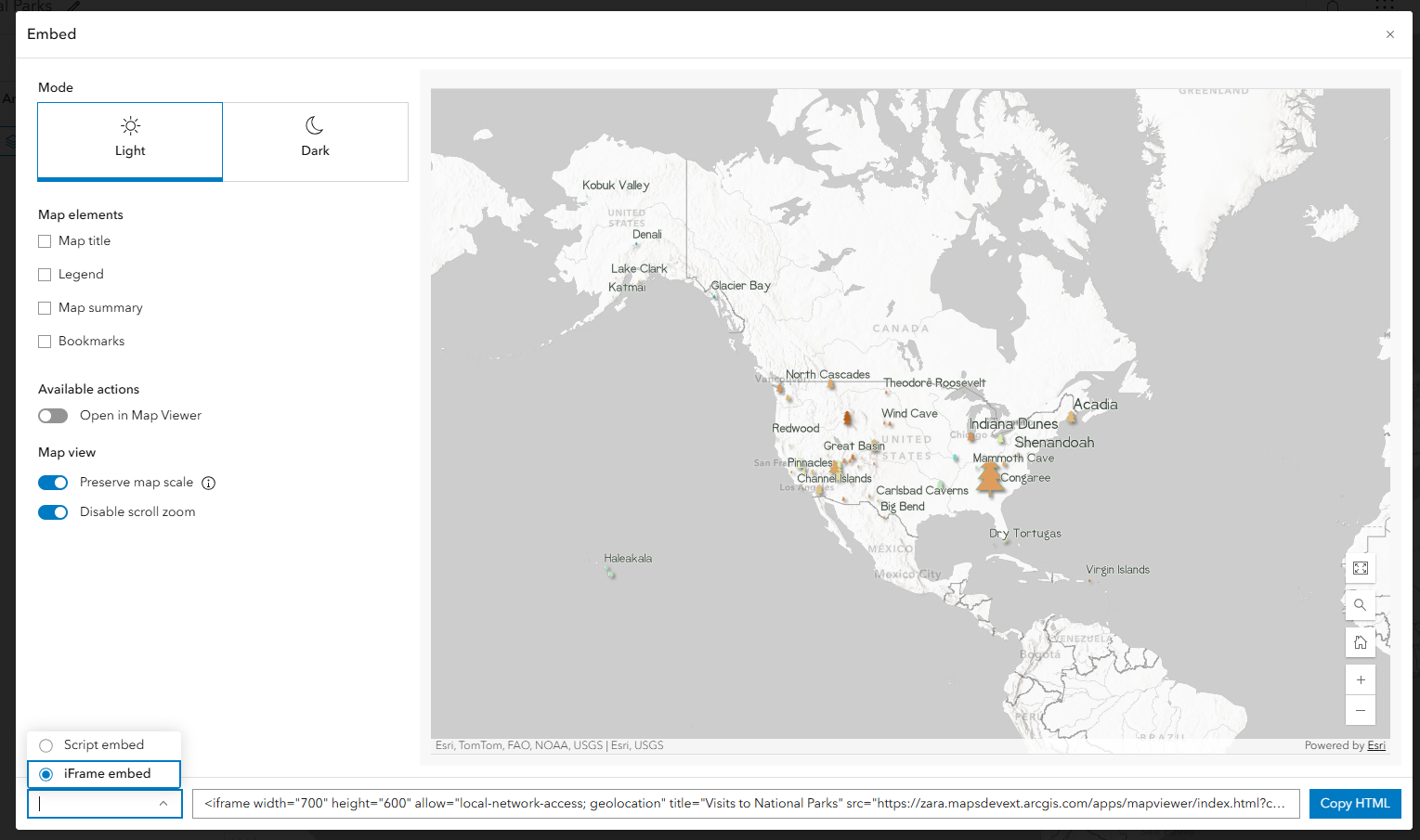 Embedding maps in websites should be fast and flexible. Map Viewer now supports two embed options: Script embed and iFrame embed. Script embed uses web components for better performance. iFrame embed is ideal for websites that don’t support script embeds. Both options let you configure the map view, and you can now optionally disable scroll zoom for a smoother embedded experience. Check out this blog to learn how to embed a map from Map Viewer.