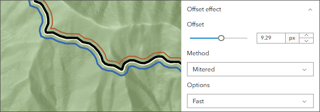 Maps can get messy, especially when there are densely packed overlapping features. Now, symbols that have been authored with an offset effect can be further configured in Map Viewer. Customizing the offset allows you to ensure your features appear just how you need, without changing any of the underlying data. Choose from a dynamic line or outline offset at a specified distance perpendicular to a line or polygon feature.