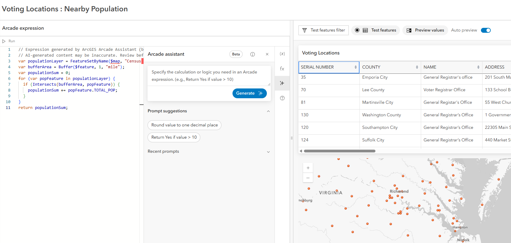 Arcade assistant (beta) now available when calculating field values