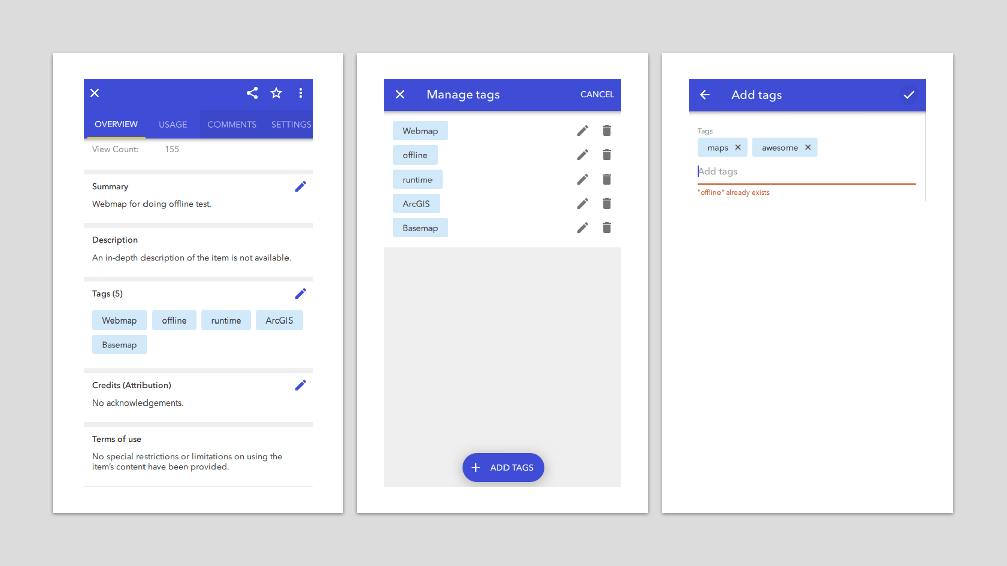 - Item owners or administrators can now add, edit or delete one or more tags at once.