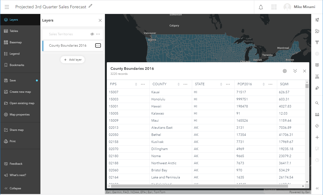 Yes, with the July 2020 update of Map Viewer Beta, you can now view your attribute data in a table. Tables are an essential part of the map because you often need to see a layer’s attribute data to really understand what information is being shown. Plus, tables list the other attributes that aren’t being visualized. Sometimes, gaining an understanding of these other attribute values can help you display your layer in different ways, communicating different messages. You’ll quickly find that working with tables in Map Viewer Beta is really no different than working with tables in the original Map Viewer or on the Data tab.