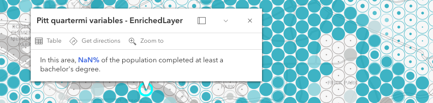 A NaN value leaked through to the popup. This happens anytime Arcade returns a calculation that divided by zero. I definitely don’t want my users to see this. So I re-entered the expression editor, copied the previous question and added additional instructions to get a more desirable result.