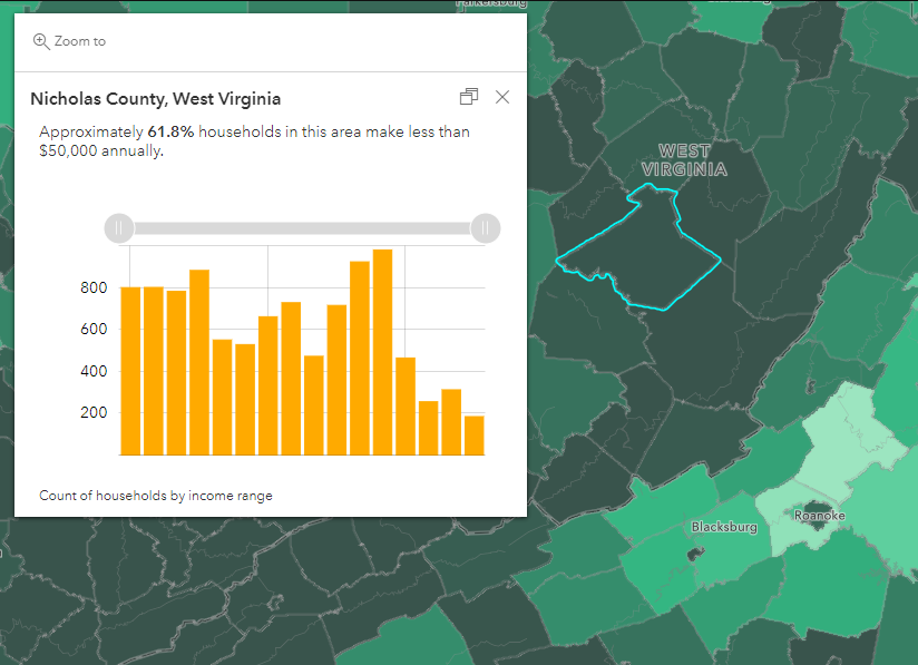 The Census offers the count of households within different income ranges like 0 to $14,999, $15,000 to $20,000, and more. But if you want to combine those fields to learn about the households making under $50,000, Arcade allows you to combine the different attributes and normalize them into a percentage.