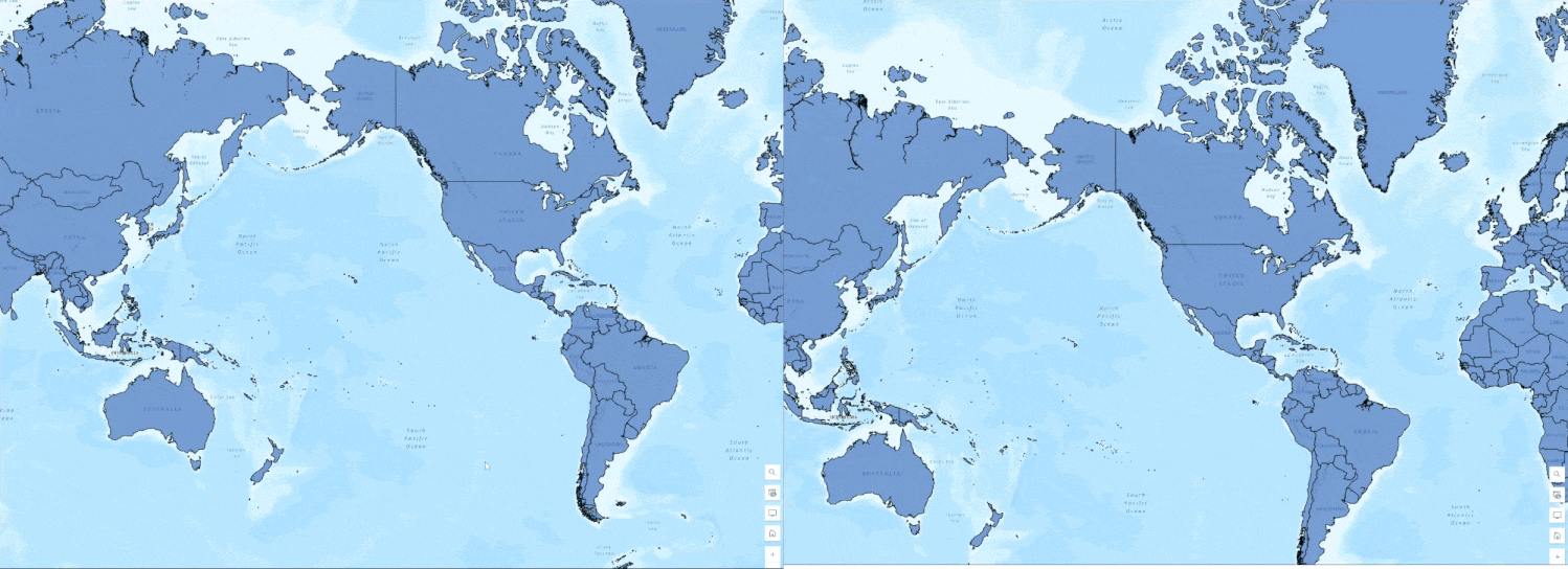 A good candidate for optimization would be a layer that contains country boundaries all over the world. You may want to view all countries at one time at smaller scales, and you also may want to zoom in to view details at city level. In below comparison panel, we can see that large geometry layer with Optimize Layer Drawing (left) loads faster on each zoom level.