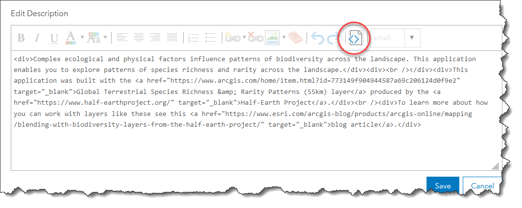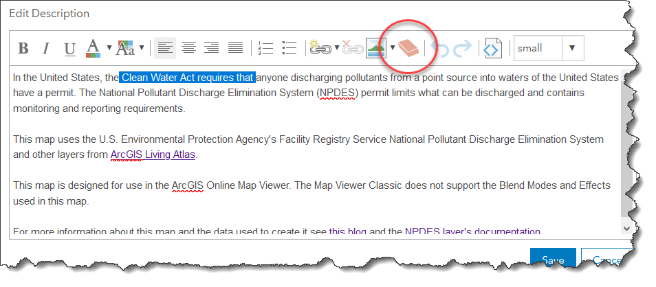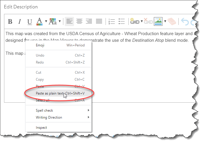 As a curator for ArcGIS Living Atlas I often see formatting issues in a layer’s description. Inconsistent size, font, color, and other properties detract from the important information contained in the description. Often these formatting issues are the result of copying text from a webpage or other document. Enthusiastic iteration can also result in undesirable formatting quirks.