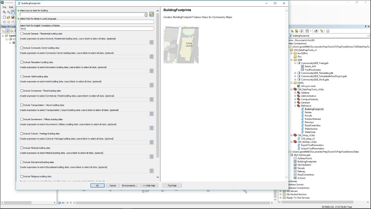 This video provides an introduction to the Community Maps Data Prep Tools. It demonstrates how to download the tools, explores the resources that are included in the download, shows you how to begin by running the Setup Tool, and gives an example of running the Building Footprint Tool. Click the image below to view the video.
