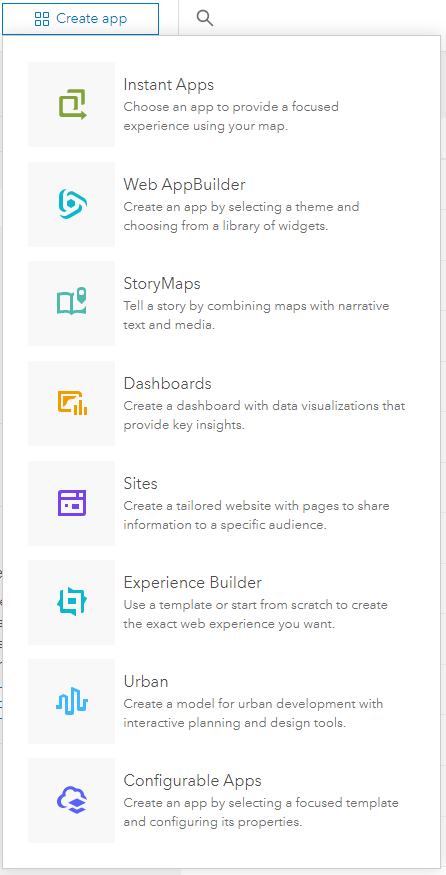 My Content remains the focalpoint for adding and creating items in ArcGIS Online. In this update, you’ll notice small changes to the button names in My Content, with the appearance of the New item and Create app buttons. These new names offer a glimpse of the underlying changes to the user experience.