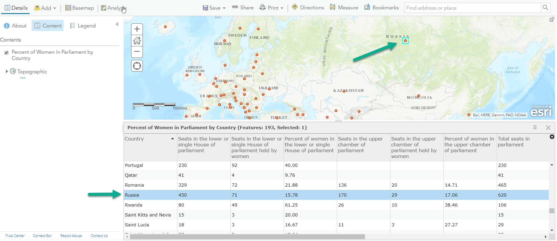 I have created a spreadsheet that contains information by country. The only location-based field we have in our spreadsheet is official country name, such as “Russian Federation” rather than “Russia.” All the other fields are numeric. I can publish our spreadsheet as a point feature layer, and handle matching issues that come up as we go.