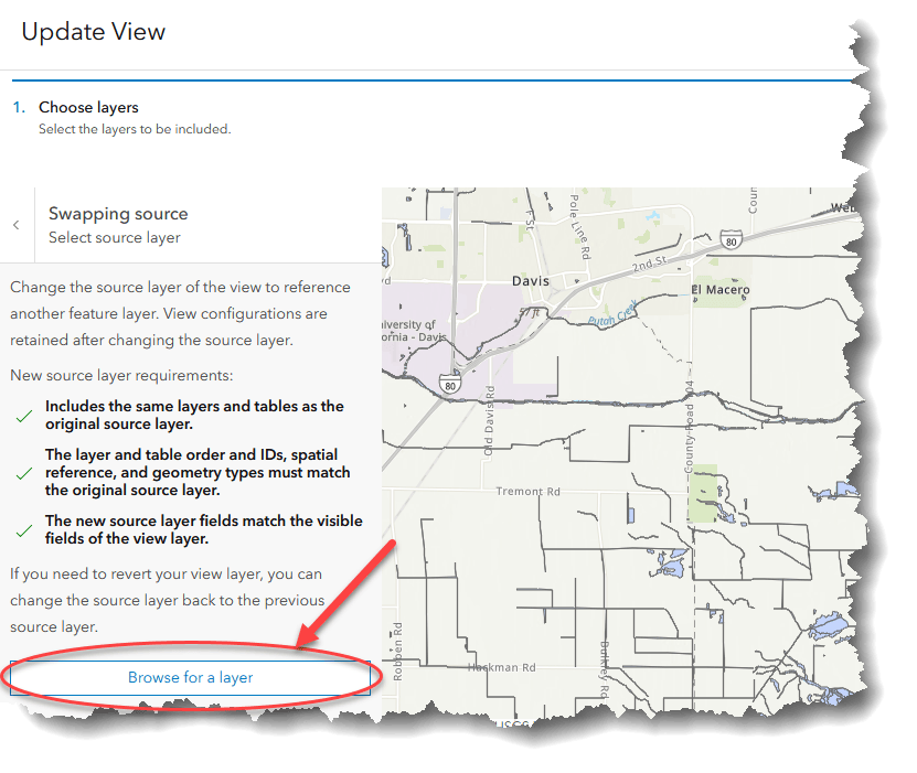 The window will remind you of the basic requirements for a layer swap to work. Click “Browse for a layer”.