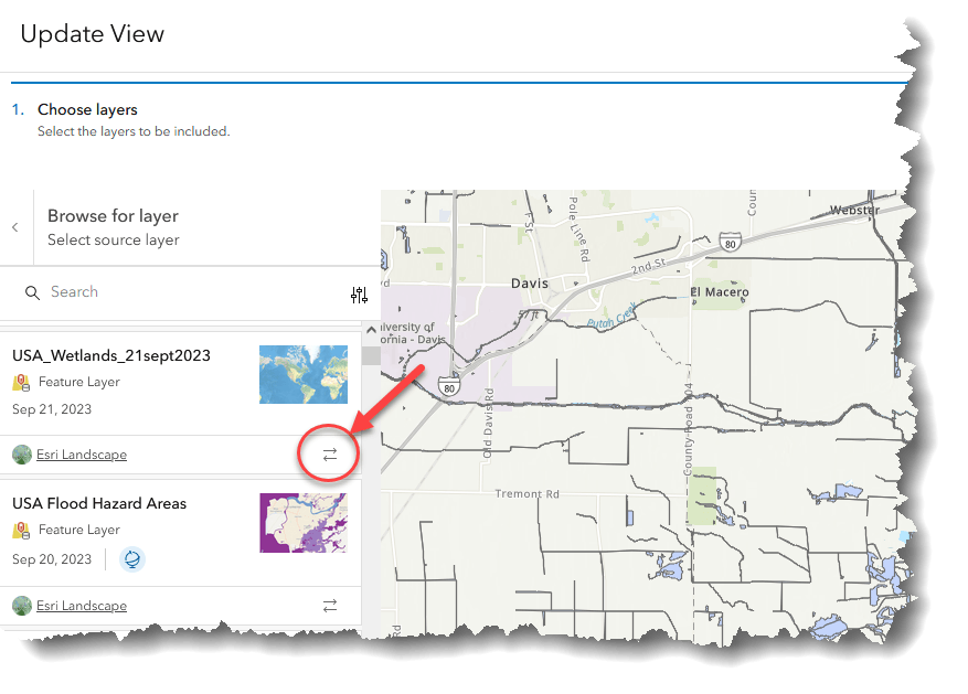 - Symbology, pop-up configuration and other properties can be saved in the layer view and will be maintained after the swap
